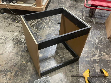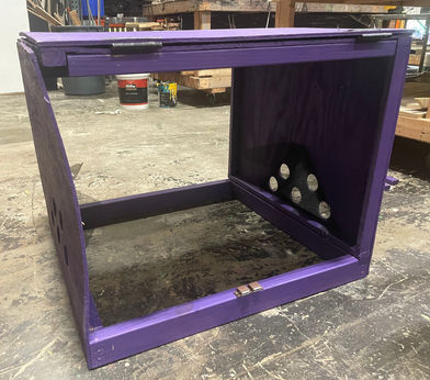 These four boxes are covers that go over fobble (fog bubble) machines. I repaired them by replacing the unstable 1x2 framing with stronger framing made of 2x3s. I was able to reuse the original doors, side panels, and base.